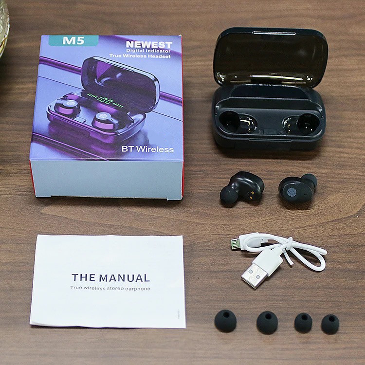 کابل شارژ ۲ جفت واشر سر گوشی با سایز مختلف دفترچه راهنما محفظه شارژ