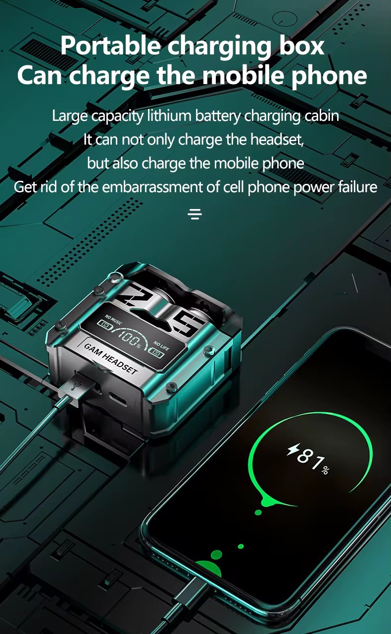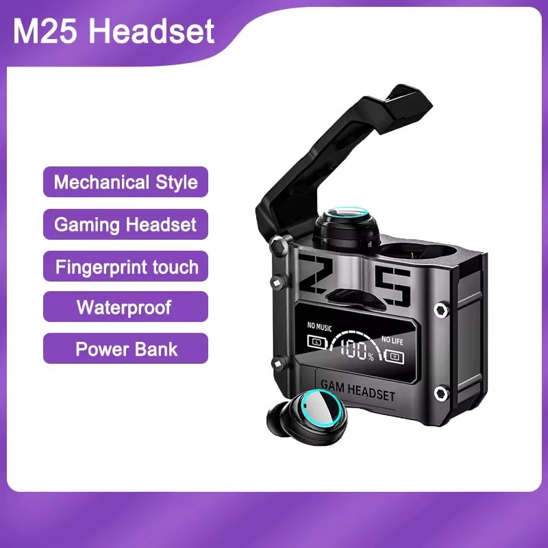 اگر به دنبال تهیه یک هدفون بیسیم گیمینگ و استفاده روزانه هستید ، هندزفری بلوتوثی گیمینگ مدل M25 ENC یک ایرپاد مخصوص بازی و استفاده روزانه است که با طراحی اسپرت با افکت های لامپ های 7 رنگ RGB ظاهر جذاب برای استفاده روزانه را به شما ارائه میکند. این مدل برای اتصال به دستگاه به بلوتوث نسخه 5.3 مجهز شده است و در مدت زمان کوتاه ، اتصال با گوشی موبایل اندروید یا ios شما برقرار خواهد شد. از ویژگیهای اصلی این محصولريال محفظه نگهدارنده یا همان کیس آن است. این کیس قابلیت شارژ هدفون را دارد. برای شارژ آن کافی است از درگاه USB-C تعبیه شده بر روی کیس و کابل شارژ درون بسته بندی استفاده کنید. همچنین این ایرپاد گیمینگ دارای یک میکروفون با کیفیت است و این ویژگی ، آن را برای مکالمه مناسب میسازد . از قابلیتهای این محصول میتوان به ضد آب بودن ، فعال بودن Siri در آیفون ، HD Voice و ENC است. زیر این محصول یک پورت خروجی USB نیز قرار دارد که به وسیله آن میتوانید از باتری ایرپاد به عنوان پاور بانک اضطراری نیز استفاده کنید