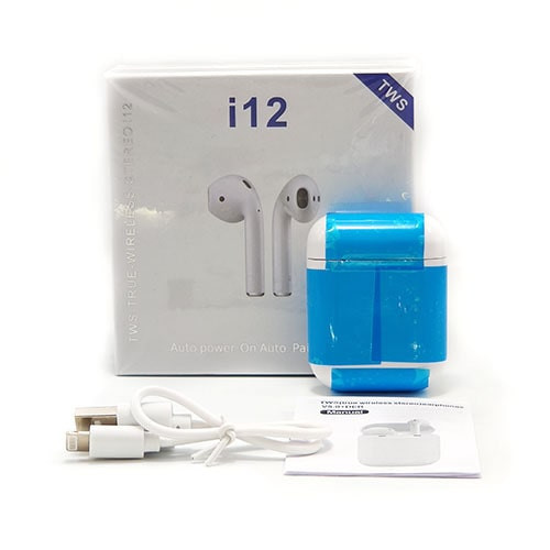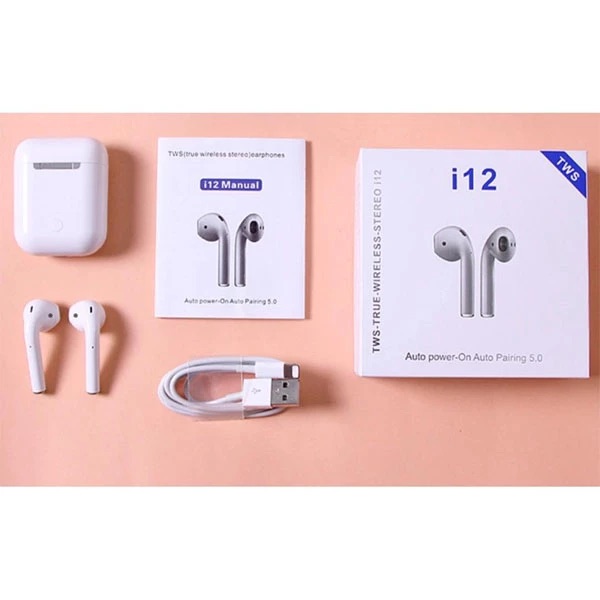 هندزفری ایرپادی مدل i12 با الهام از طراحی بی نقص ایرپاد اپل، کاملا مشابه و هم سایز آن ساخته شده است. گوشی ها در داخل یک باکس قرار دارند که برای نگهداری و شارژ آنها استفاده میشود. برای شارژ هندزفریها پس از شارژ باتری باکس، به محض قرار دادن هندزفریها در داخل قاب، اتومات شارژ میشوند. با هر بار شارژ کامل هندزفری ها شما میتوانید حدودا به مدت 2 ساعت بدون وقفه از آن استفاده کنید. در مورد کیفیت صدا، این مدل کیفیت متوسطی دارد و برای گوش دادن به موسیقی بسیار مناسب است. البته بدیهیست که i12 کیفیت فوق العاده بالایی در حد مدل های برند ندارد اما از کیفیت نسبتا خوبی برخوردار بوده و میتواند انتظارات شما را از یک هندزفری تا حد زیادی برآورده سازد. گوشی ها به صورت لمس یا تاچ کنترل میشود و کلید فیزیکی ندارد. برای جفت شدن یا به اصطلاح Pair کردن هندزفریها و استفاده همزمان برای پخش صدا از هر دوگوشی، لازم نیست شما هیچ کاری انجام دهید، به محض خارج شدن هندزفری ها از قاب شارژ هر کدام از آنها بصورت اتومات روشن شده و با یکدیگر جفت یا به اصطلاح Pair میگردد. پس از اتصال هندزفری ها به هم، لازم است بلوتوث تلفن همراه خود را روشن کنید و از لیست موجود گزینه i12 را انتخاب کنید. در این مدل هر دو گوشی دارای میکروفن بوده و قابلیت استفاده و مکالمه به صورت مجزا را دارد اما نه به صورت همزمان برای دو تلفن همراه مختلف. از ویژگی های دیگر این مدل می توان به قابلیت کنترل تماسها اشاره کرد. در پایان یادآور می گردد همانطور که اشاره شد، نمونه های مختلفی از هندزفری ایرپاد در بازار وجود دارد. این محصولات با قیمتهای متفاوت به نسبت کیفیت طبقه بندی میشود، بعضی ها بصورت تک گوش، بعضی دو گوش، و برخی با باکس یا بدون باکس و در سایز های متفاوت. بدیهی است. همانطور که از عکسها مشهود است، این مدل و نیز قاب آن یکی از نزدیکترین نمونههای ساخته شده به ایرپاد بوده و از کیفیت متوسطی برخوردار میباشد.