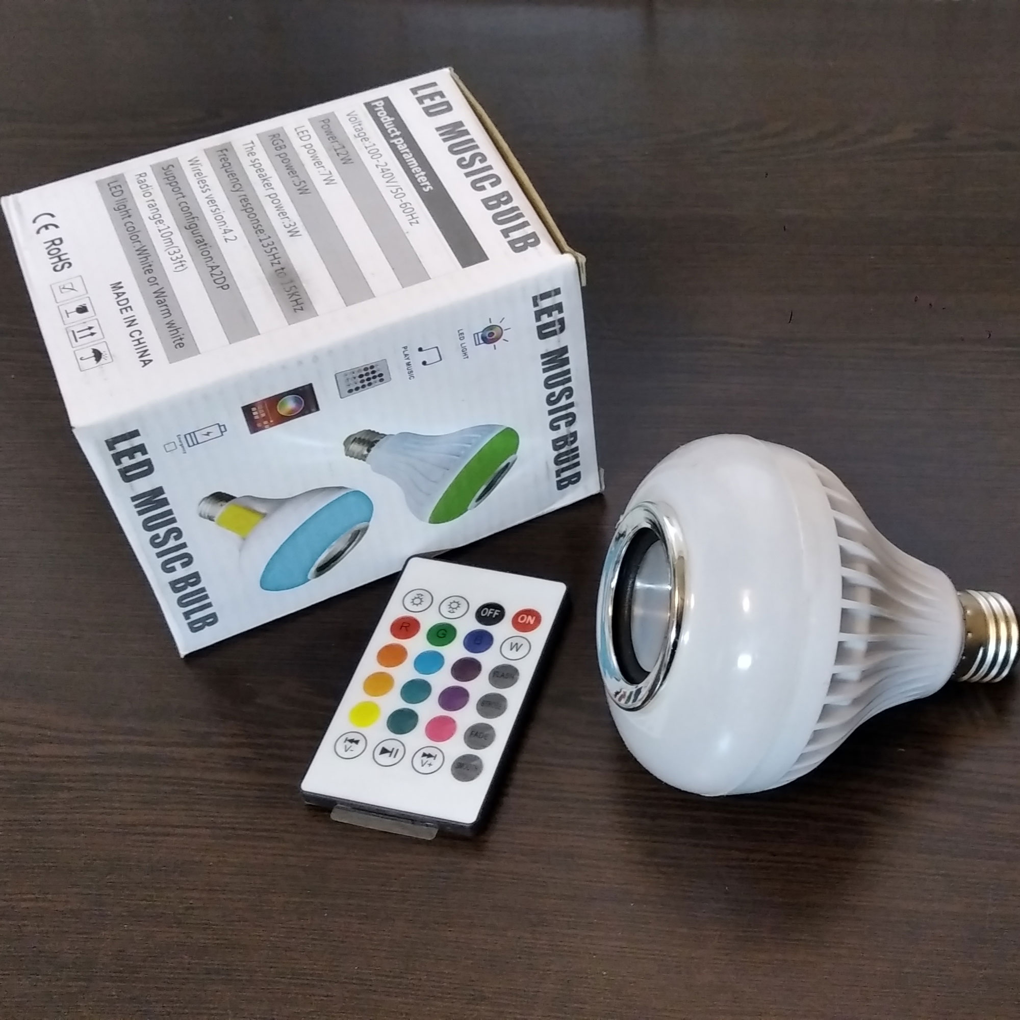 لامپ هوشمند و اسپیکر بلوتوثی مدل led music blub کد HB-61 دارای توان خروجی ۱۲ وات، توان LED ۶ وات، توان RGB ۳ وات و توان اسپیکر ۳ وات است. این دستگاه با ولتاژ ورودی ۱۰۰ - ۲۲۰ ولت متناوب کار می کند و با استفاده از بلوتوث نسخه ۳ قابلیت اتصال به دستگاه های دیگر را داراست. علاوه بر این، با برد عملکرد کنترل بین ۸ تا ۱۰ متر (بدون وجود مانع)، می توانید به راحتی این دستگاه را کنترل کنید.