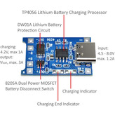 آی سی کنترل شارژ : TC۴۰۵۶ یا TP۴۰۵۶ / آی سی محافظ : DW۰۱ / ماسفت شارژ :۸۲۰۵A / ولتاژ ورودی : ۵ ولت (که توسط میکرو USB TYPE C یا توسط دو پدی که در دوطرف USB است باید تامین شود) / ولتاژ شارژ کامل : ۴.۲ ولت / جریان شارژ : در حالت عادی ۱ آمپر (قابل تغییر با تغییر مقاومت R۳) / ماکزیمم جریان خروجی : ۳ آمپر / روش شارژ : جریان ثابت/ ولتاژ ثابت (CC/CV) / نشانگر وضعیت در حال شارژ : دارد (ال ای دی قرمز) / نشانگر وضعیت شارژ کامل : دارد ( ال ای دی سبز) / محافظت در برابر شارژ بیش از حد : دارد / محافظ در برابر دشارژ بیش از حد : دارد / محافظت در برابر اتصال کوتاه : دارد / محافظت در برابر جریان اضافی : در برابر جریان های بیش از ۳ آمپر محافظت شده